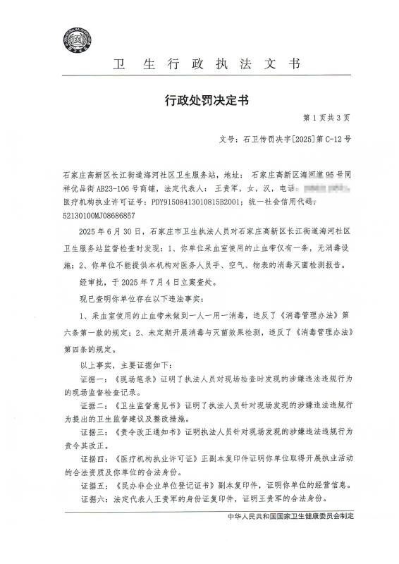 黄色片高新区长江街道海河社区卫生服务站未定期开展消毒与灭菌效果检测案